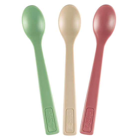 Es ist Zeit für grüne, innovative Produkte, daher ist Löffel nicht mehr gleich Löffel. Der Eat Green Fütterlöffel im 3er Pack von nip besteht aus über 94% nachwachsenden Rohstoffen (Zuckerrohr). Das 3er Löffel Set ist für Babys ab 4 Monaten geeignet und hat eine besonders weiche, runde Löffelschale die den sensiblen Gaumen des Babys schützt. Die schmale Löffelform passt somit ideal in den kleinen Babymund. Das minimalistische Design in zarten Erdtönen ist besonders beliebt und passt sich perfekt den aktuellen Trends an. Das feste Material ist BPA-frei und PVC frei. Es kann problemlos in der Spülmaschine gereinigt werden.