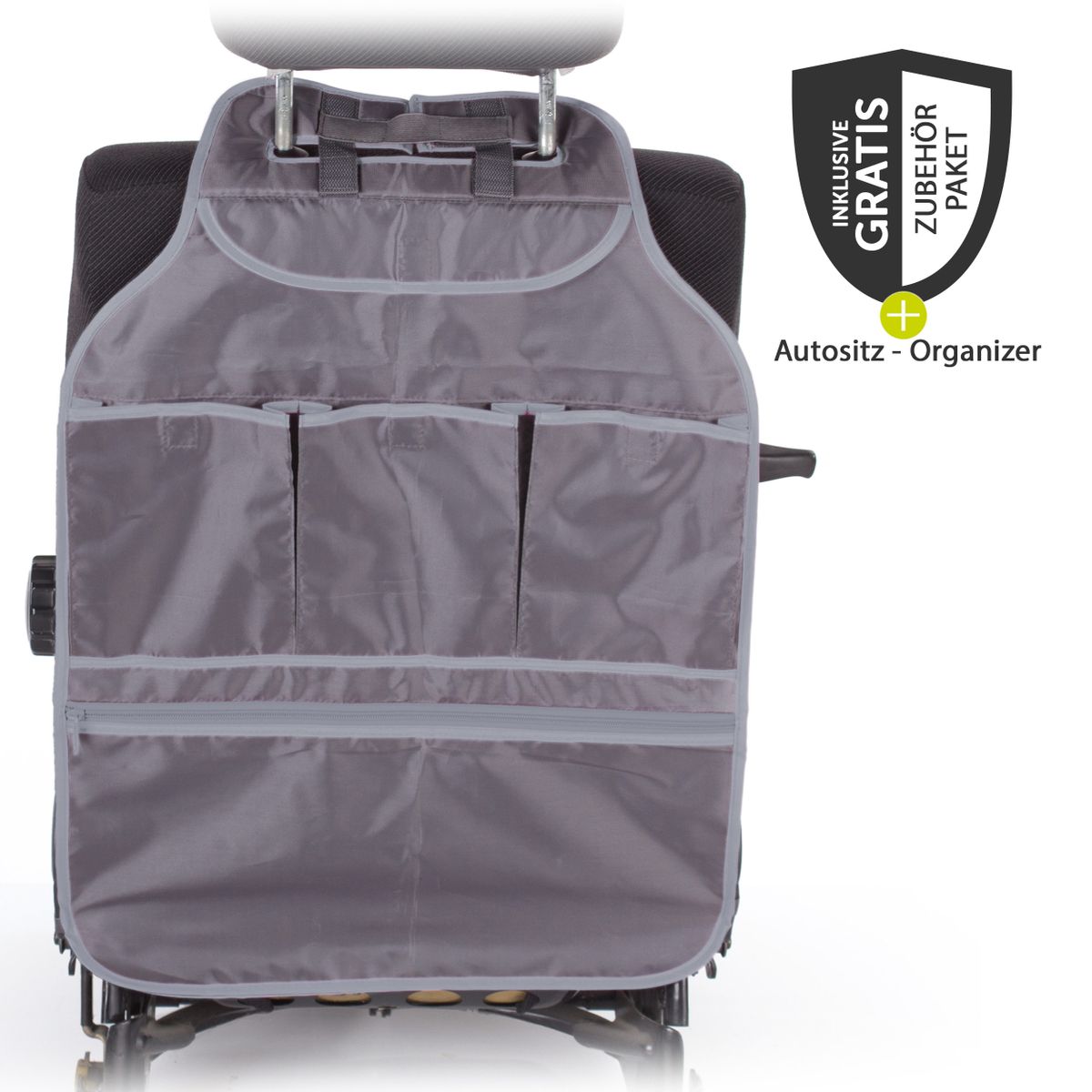| Lieferumfang: | Kindersitz, 2 Isofix-Einführhilfen, Auto - Organizer, Autositz - Schutzunterlage mit Taschen |