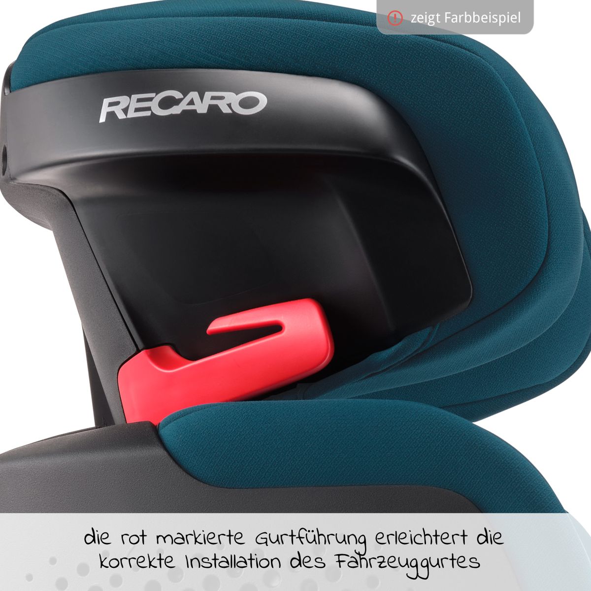 Du schnallst Dein Kind mit Hilfe des 3-Punkt-Fahrzeuggurtes an. Rot markierte Führungen helfen dabei, dass der Gurt richtig sitzt. So ist für optimale Sicherheit gesorgt.