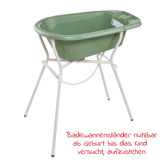 Plitsch Platsch, es wird Zeit für das nächste Babybad. Mit dem 3-teiligem Set Badelösung Bella Bambina - Shale Green von Rotho kann Dein Kleines nach Herzenslust plantschen und sein Bad so richtig genießen. In der Wanne ist eine integrierte Sitzmulde, die Deinem Spatz einen sicheren Halt bietet, sobald es selbstständig sitzen kann. Da die Babywanne sehr praktische Maße hat, bietet sie Dir viel Armfreiheit um Dein Baby zu waschen und es zu halten.