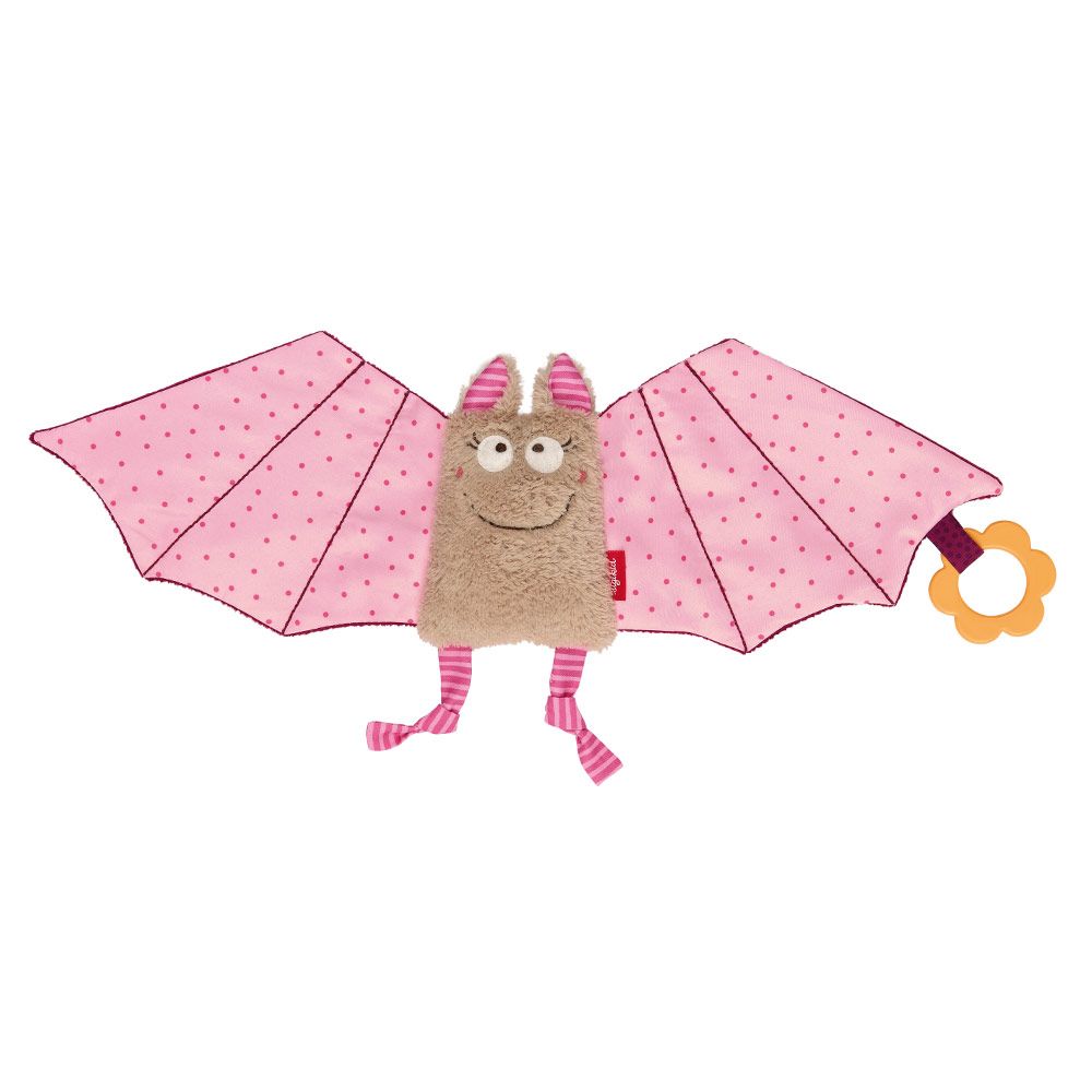 Das niedliche Schnuffeltuch Fledermaus - Baby Bite Me von Sigikid ist kuschelig weich und anschmiegsam. Es begleitet Dein Baby von Anfang an und ist Spielfreund und Trösterlein zugleich. Die lustigen Flügel und Zipfel regen zum Greifen und Entdecken an – auf diese Weise wird die Neugierde Deines Kindes geweckt und seine Sinne spielerisch angeregt. Das Schnuffeltuch trägt außerdem Knisterfolie und eine Quietsche in sich und sorgt so für Unterhaltung während der Wachphasen. Der blumenförmige Beißring massiert in der Zahnungsphase wohltuend das Zahnfleisch Deines Schatzes. Die kleine Feldermaus wird sicher schnell zum unentbehrlichen Begleiter für Tag und Nacht.