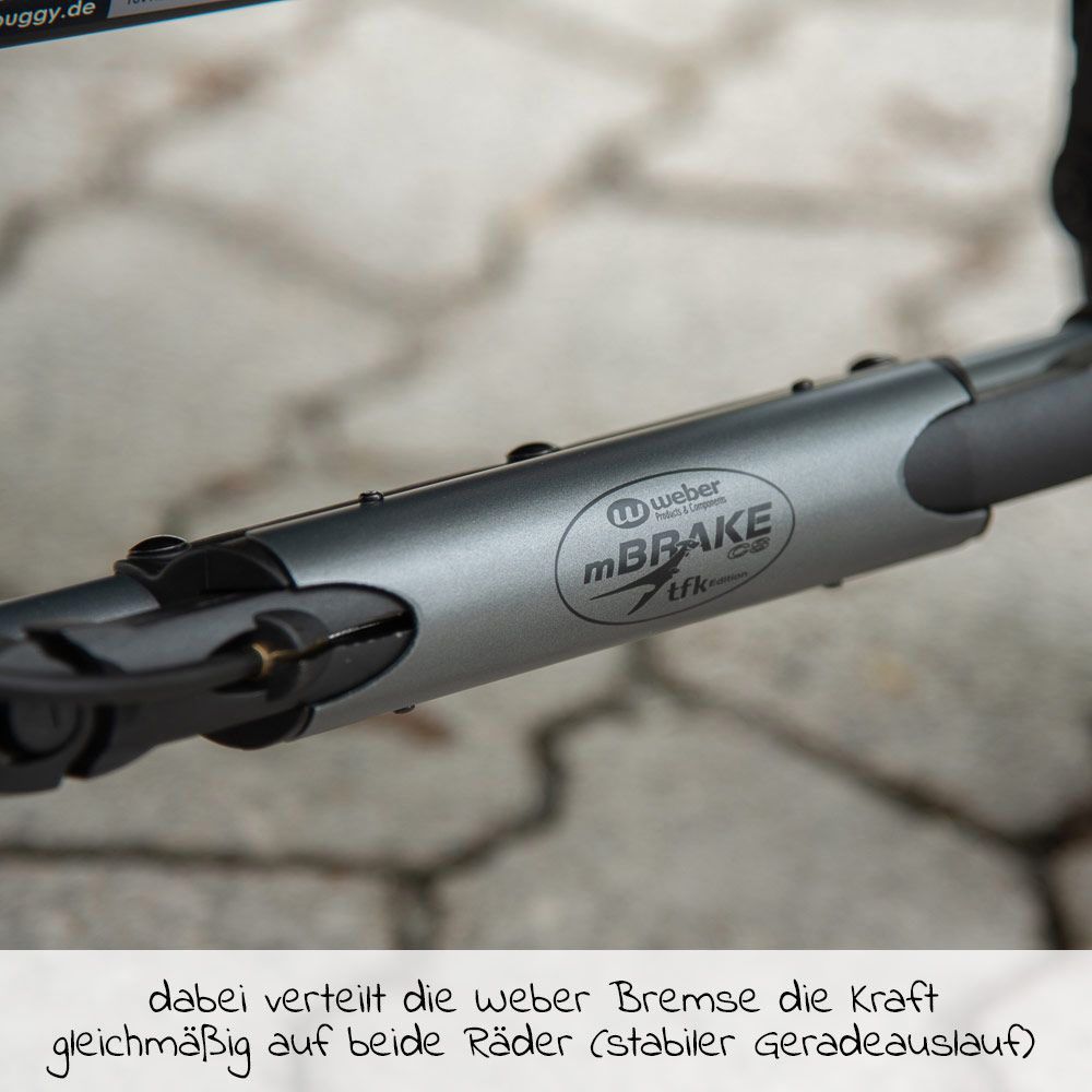 Einen wunderbaren Sitzkomfort auch auf Waldwegen gewährleisten die integrierte Federung und die 4 Lufträder, die Stöße gut abdämpfen. Richtungsänderungen sind mit den schwenkbaren Vorderrädern einfach zu bewerkstelligen – und das, ohne umsetzen zu müssen. Unebenes Gelände und die flexiblen Vorderräder neigen dazu, zu blockieren: Dann hilft es, sie festzustellen. Die Handbremse ist hilfreich, wenn es den Berg hinunter geht. Per Handbedienung betätigst Du die Feststellbremse und der Wagen steht sicher. Egal ob Papa, Mama, Oma oder Tante: Du kannst den Knickschieber auf eine Höhe zwischen 73 cm und 122 cm einstellen, sodass alle mal schieben dürfen und dabei sogar die Haltung stimmt. Unten im Korb haben Spielzeug, Flasche und Co. sowie die Einkäufe Platz. Irgendwann geht auch der aufregendste Ausflug zu Ende. Zusammengeklappt passt der Wagen ohne Schwierigkeiten ins Fahrzeug. Die Räder sind abnehmbar, sodass Du den Geschwisterwagen noch ein bisschen kleiner kriegst. Der Bezug lässt sich abziehen und darf bei maximal 30° per Hand gewaschen werden. Er gehört nicht in den Trockner oder unter das Bügeleisen!