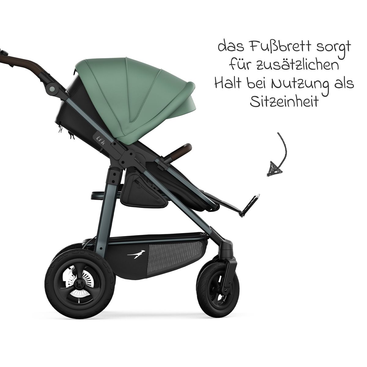 Der Mono 4 Kombi-Kinderwagen von TFK bietet Dir ein federleichtes Fahrgefühl und höchste Flexibilität für den Alltag. Das hochwertige Alu-Gestell mit Luftreifen garantiert maximalen Komfort auf jedem Untergrund, während die Kombi-Einheit (Babywanne & Sitz) Dein Kind vom ersten Tag bis ca. 36 Monate sicher und bequem begleitet. Das umfangreiche XXL Zubehörpaket enthält alles, was Du unterwegs brauchst, damit jeder Ausflug zum Vergnügen wird.