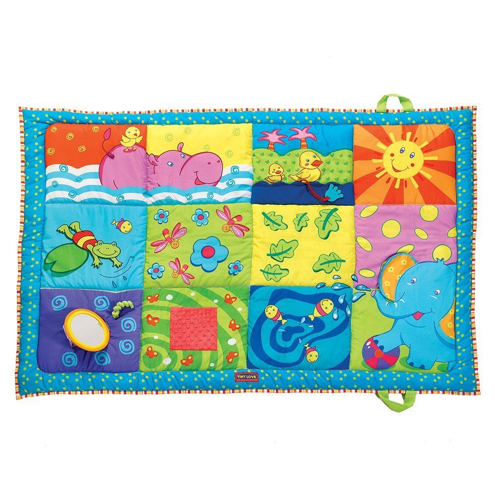 Die Super Mat von Tiny Love ist eine extra lange und besonders gepolsterte Spieldecke, auf der ihr Baby sich allein, mit den Eltern, einem Geschwisterchen oder einem Freund durch viele Aktivitäten die Zeit vertreiben kann. Ob Draußen oder Drinnen - dieses Allzweck Spielareal bringt eine große Vielfalt an Stoffen, abnehmbaren Spiegeln und verschiedensten Aktivitäten mit sich, die ihr Kind zum Erforschen und Entspannen einladen. Die fröhlich strahlenden Gesichter ermuntern ihr Kind, sie sich anzusehen und zurückzulächeln.